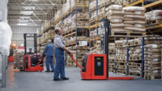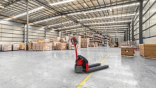 | Die Niederhubwagen T16 ist besonders robust konstruiert. So bestehen Deichsel und Motorabdeckung aus glasfaserverstärkten Materialien und widerstehen so dauerhaft der harten Belastung beim Rangieren, Kommissionieren und Transportieren. Für mehr Sicherheit sorgt das tief heruntergezogene Chassis. | Preis ab CHF 4'490.– |
